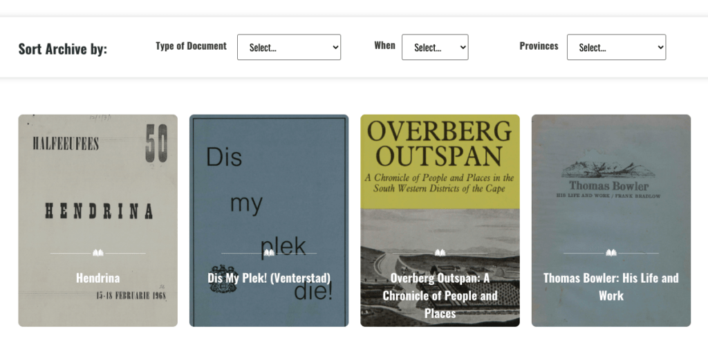 Make use of our directory to browse historical documents with no agenda. Dive into a topic you know well or learn more about those living in the growth of South Africa. Find it here.